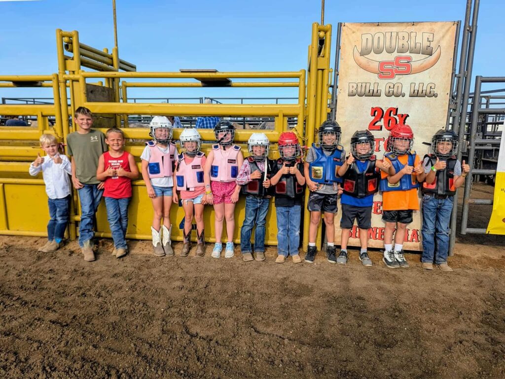 To participate in the Mutton Busting you must be at least 6 years old and weigh 75 pounds or less. We will allow as many kids that want to sign up.